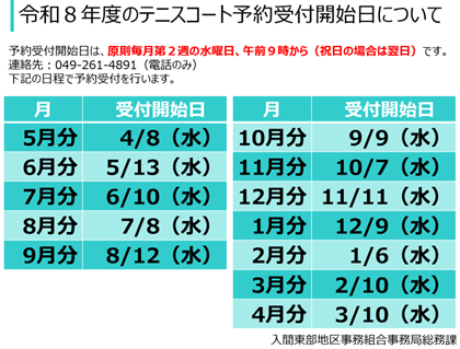 なお、年末年始など予約受付開始日が変更となる場合がありますので、その際は改めてホームページでお知らせします。